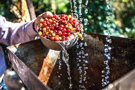열매 제거: 성숙한 커피 열매에서 씨앗(콩)을 분리하기 위해 열매를 제거합니다.