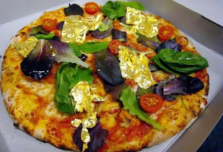 뉴욕의 24K 피자는 인더스트리 키친에서 2,700달러에 제공되는 금박 피자입니다. 수입 트러플, 오세트라 캐비어, 푸아그라, 치즈가 얹혀 있으며, 뉴욕 스카이라인을 배경으로 즐기는 미식의 정점입니다. 이 피자 한 판은 일반 피자 168판 가격에 맞먹죠!